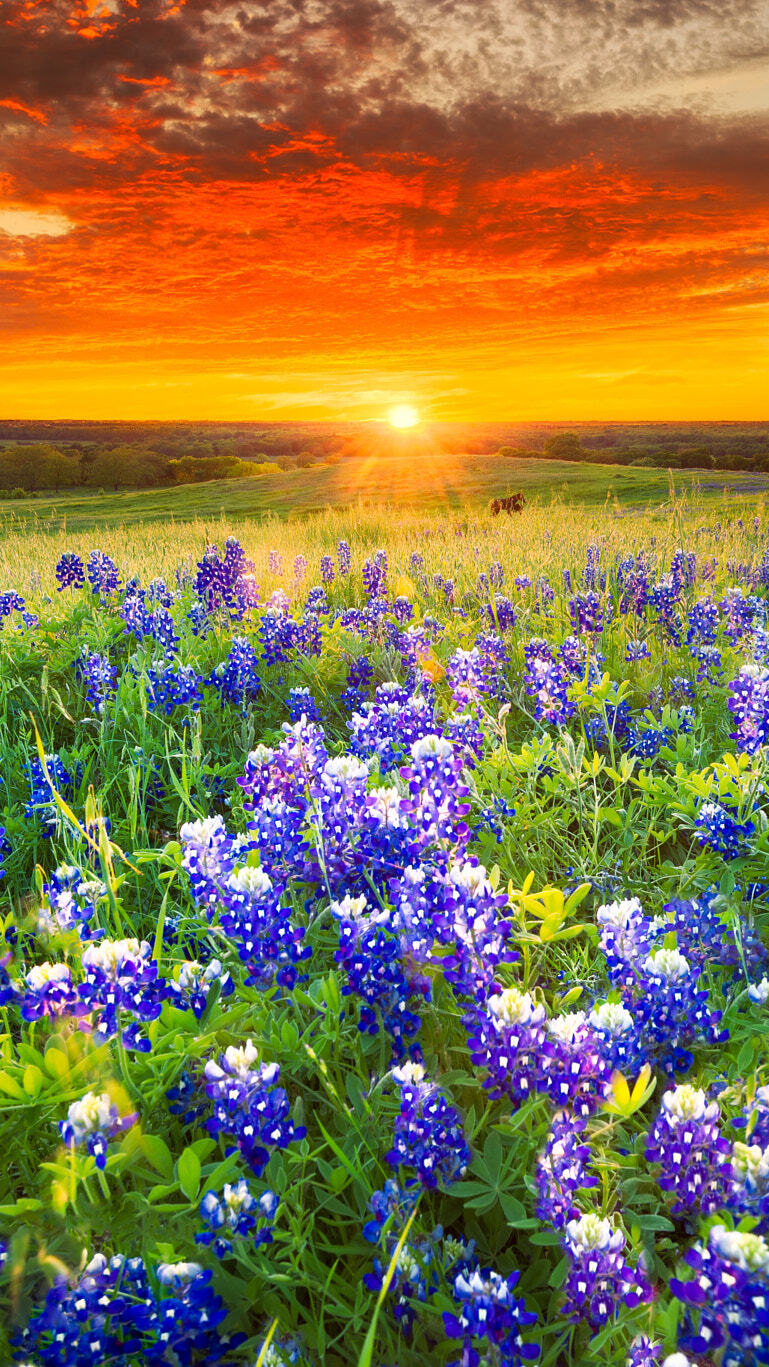 Edytor tapety: Zachód słońca nad łąką z łubinami