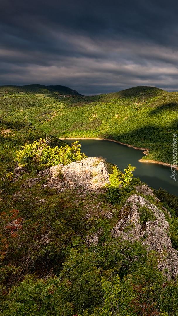 Edytor tapety: Zachmurzone niebo nad górskim jeziorem