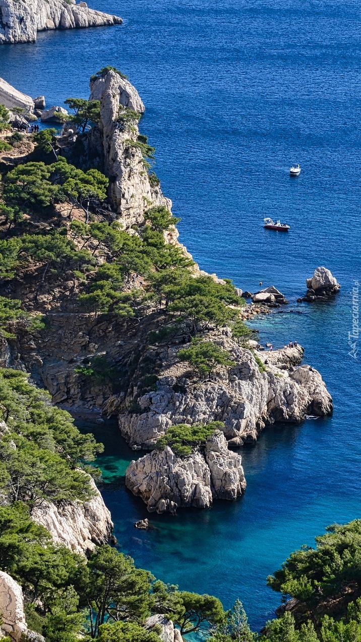 Edytor tapety: Zadrzewione skały nad morzem