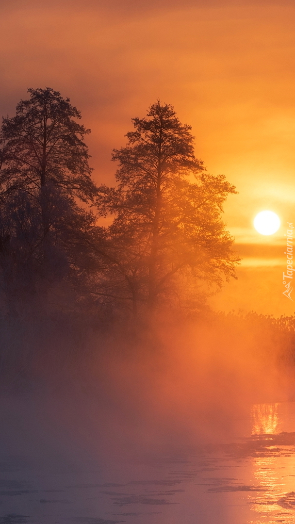 Edytor tapety: Wschód słońca nad rzeką Gwda
