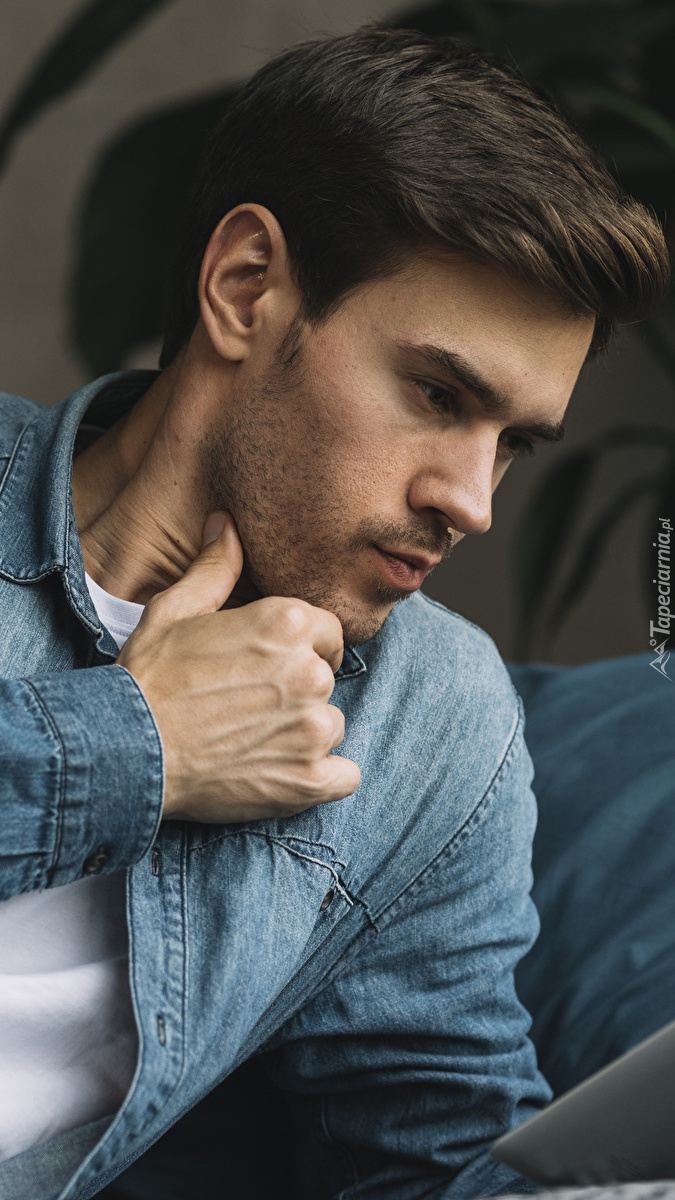 Edytor tapety: Mężczyzna w dżinsowej koszuli