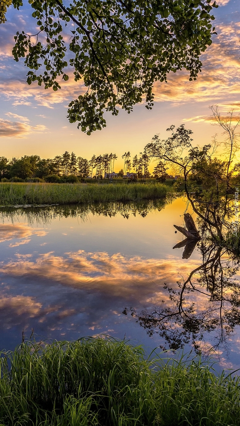 Edytor tapety: Szuwary i drzewa nad jeziorem