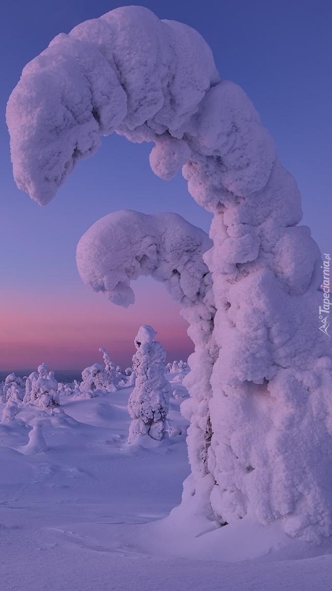 Edytor tapety: Pochylone zasypane śniegiem drzewa