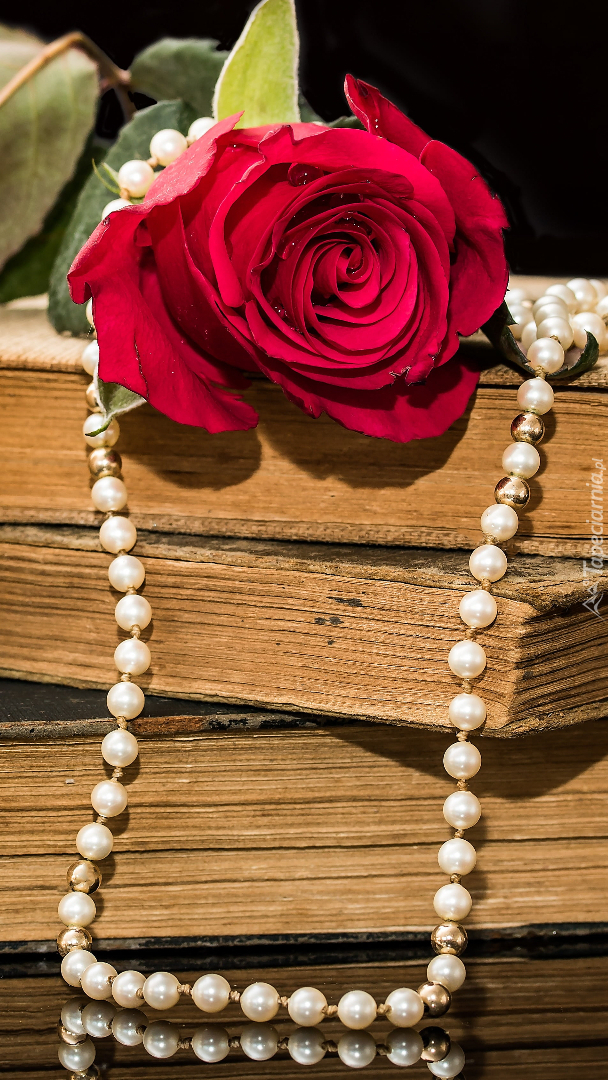 Edytor tapety: Róża i perły na starych książkach