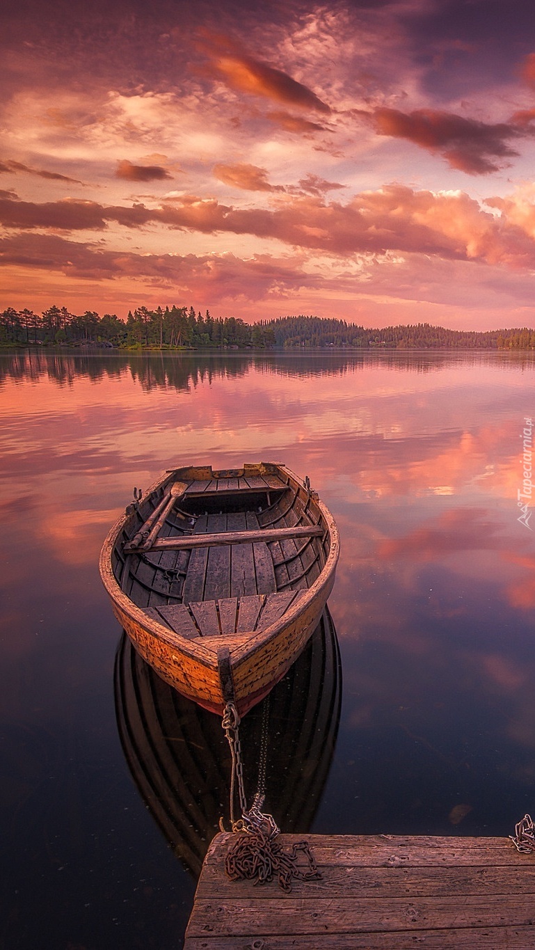 Edytor tapety: Zacumowana łódka na jeziorze