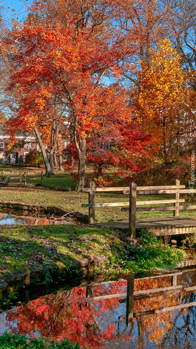 Edytor tapety: Jesienne drzewa obok mostku w parku
