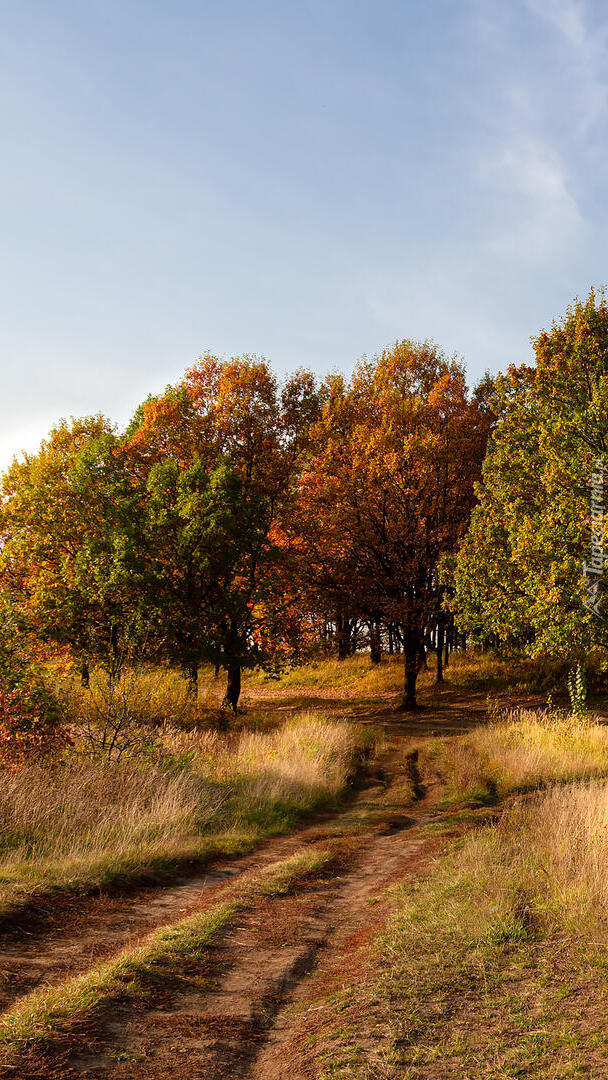 Edytor tapety: Jesienne drzewa przy leśnej drodze