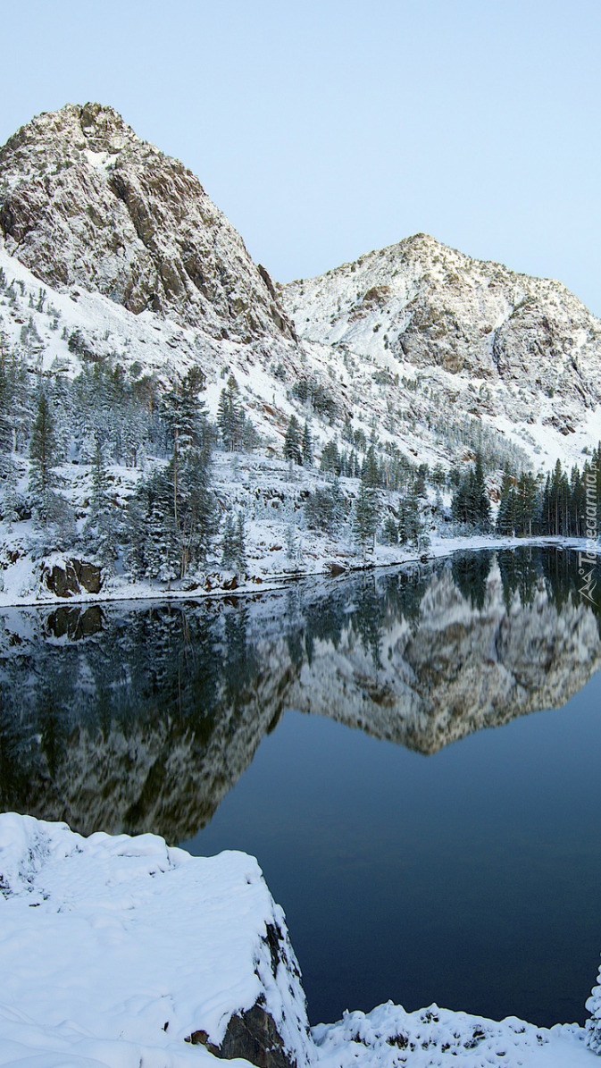 Edytor tapety: Ośnieżone góry nad jeziorem