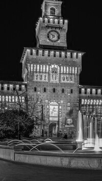 Edytor tapety: Zamek Sworzów i fontanna na Placu Piazza Castello