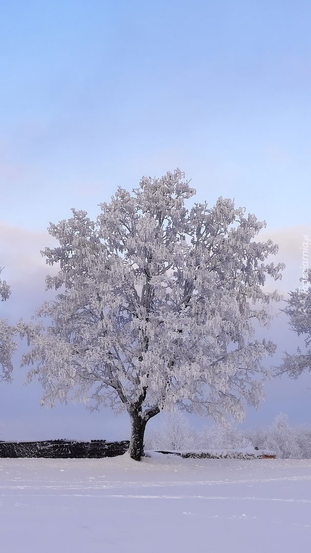 Edytor tapety: Oszronione drzewo na polu