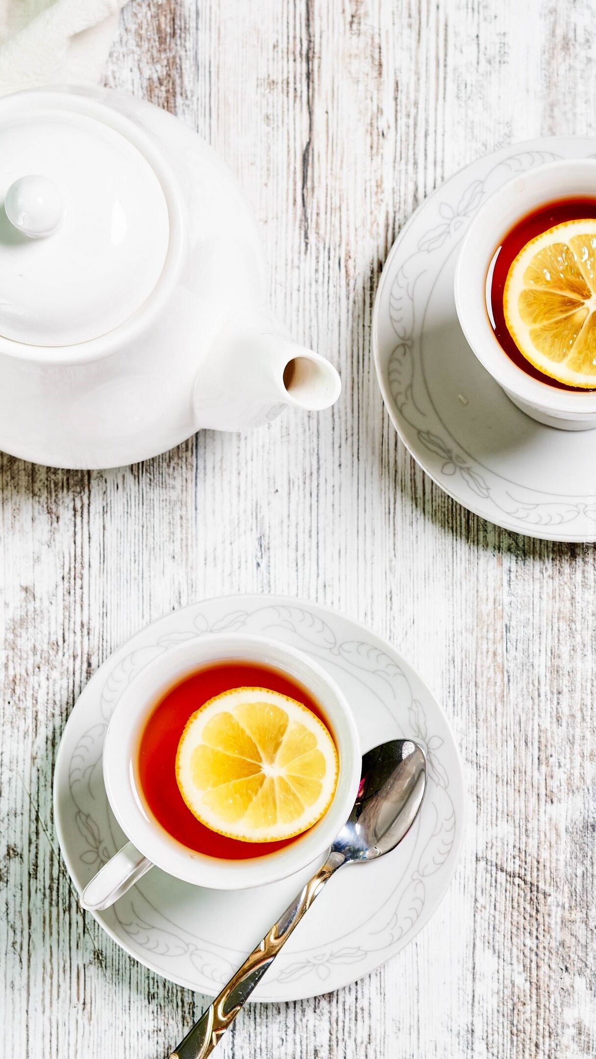 Edytor tapety: Czajnik obok filiżanek z herbatą
