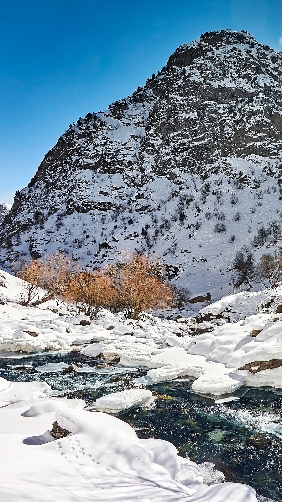 Edytor tapety: Rzeka Siama w zimowych górach Gissar