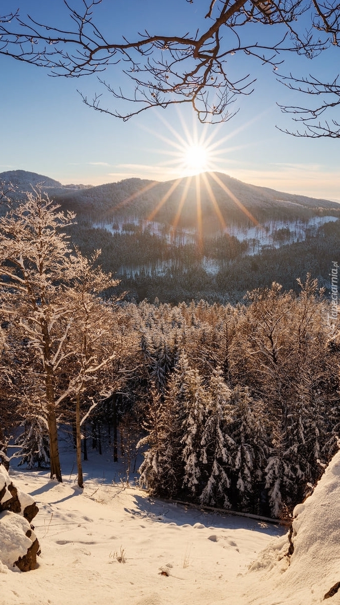 Edytor tapety: Promienie słońca nad górami