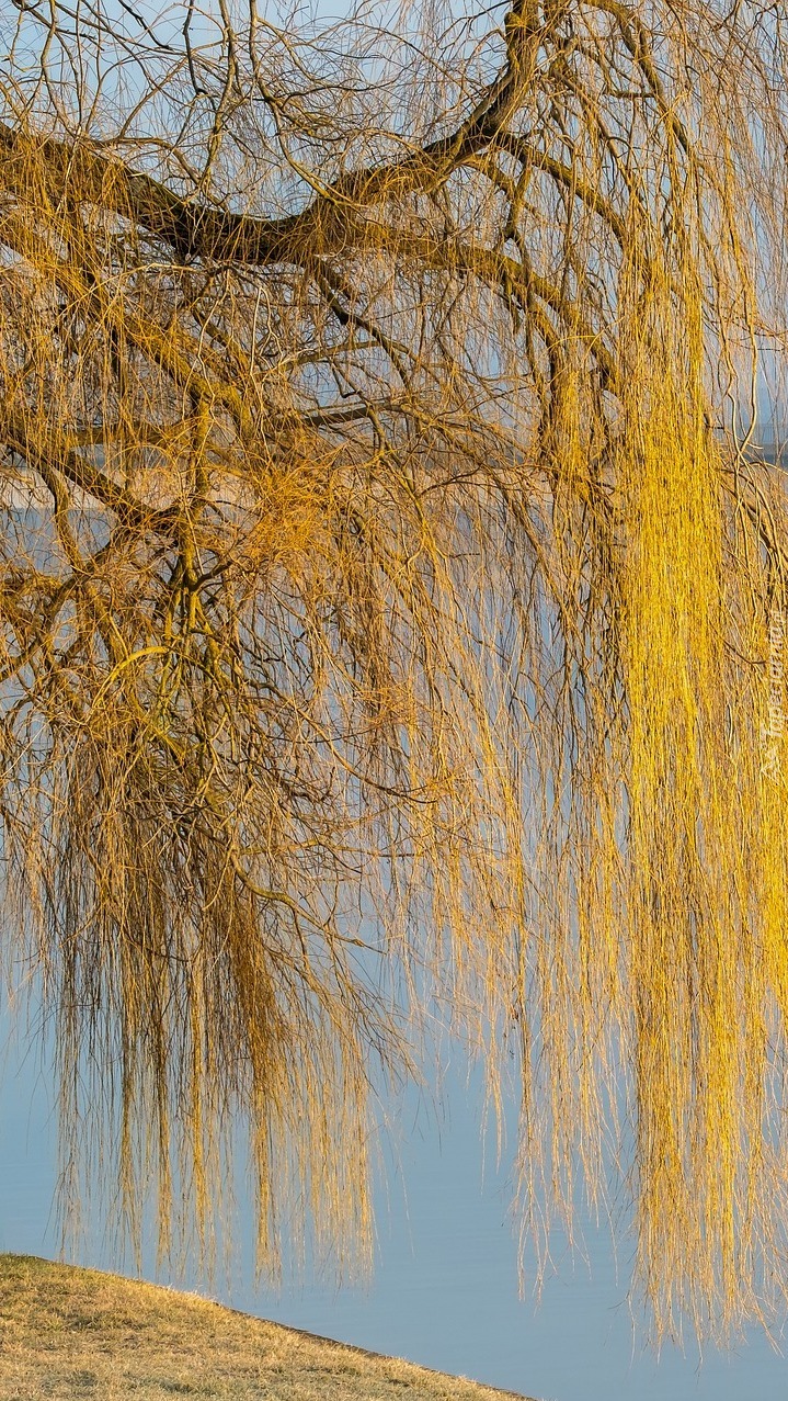 Edytor tapety: Gałązki wierzby płaczącej nad rzeką