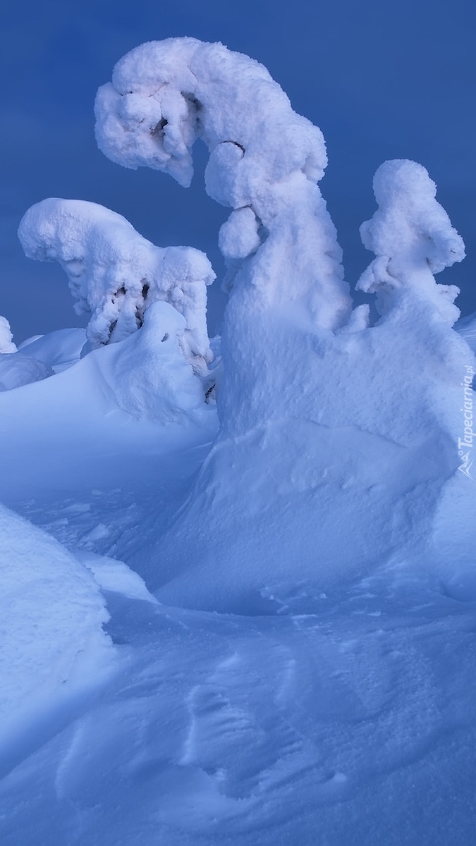 Edytor tapety: Zaśnieżone drzewa w zaspach