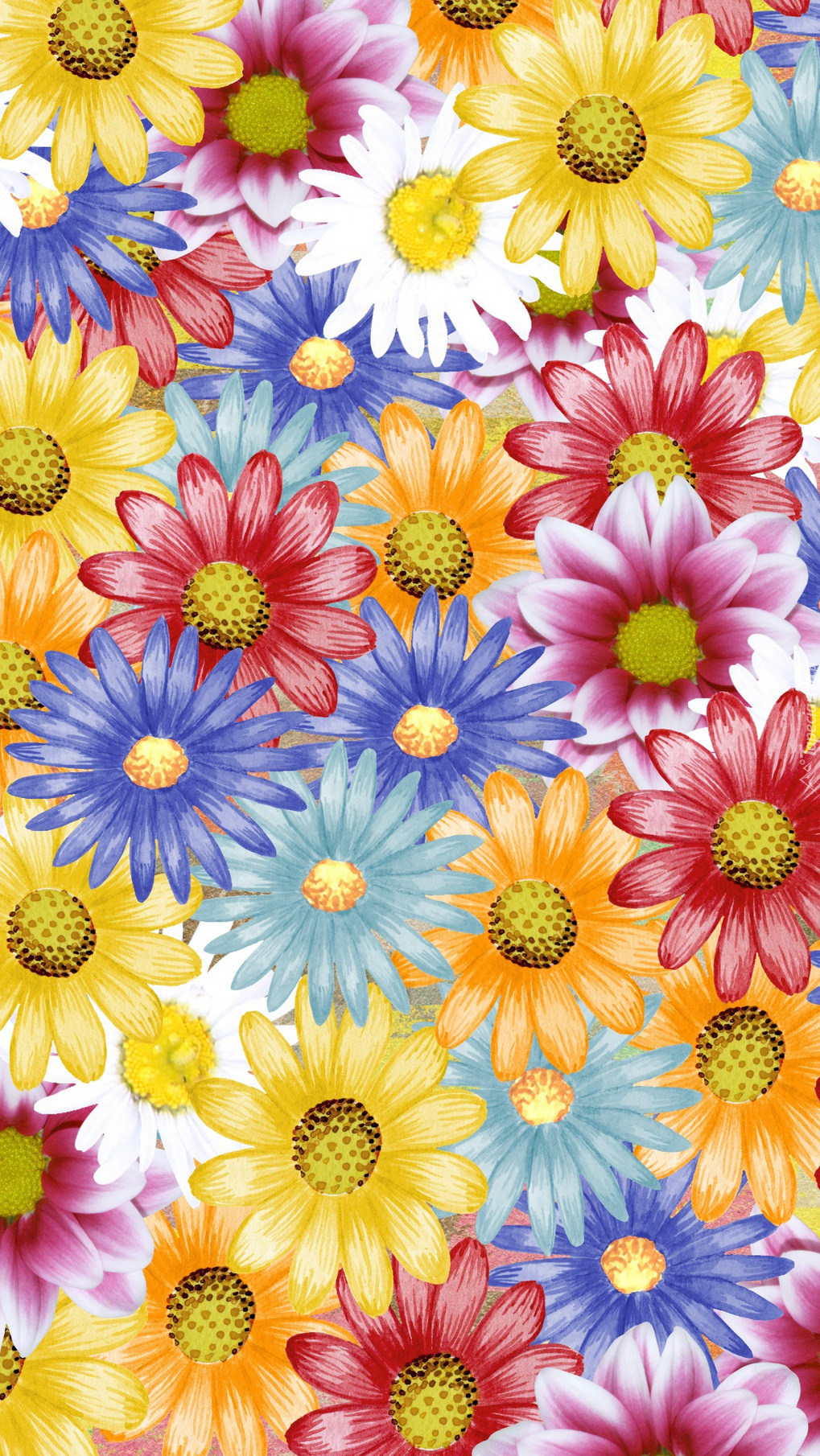 Edytor tapety: Różnokolorowe kwiaty w grafice