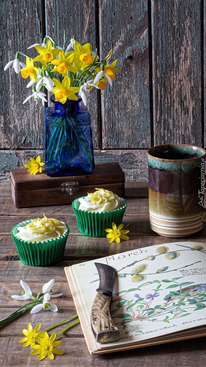 Edytor tapety: Żonkile w szklanym wazonie