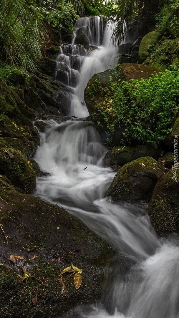 Edytor tapety: Omszałe kamienie przy wodospadzie