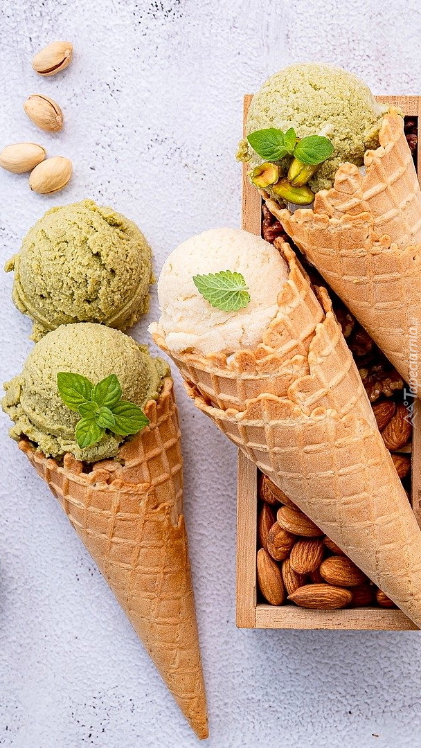 Edytor tapety: Lody pistacjowe w rożkach