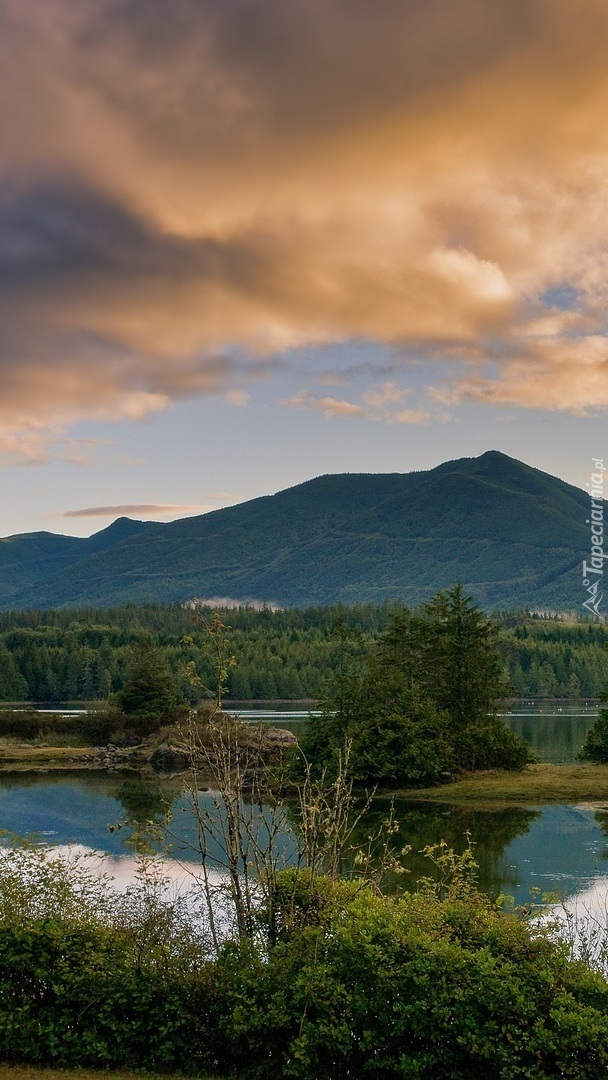 Edytor tapety: Chmury nad jeziorem i górami