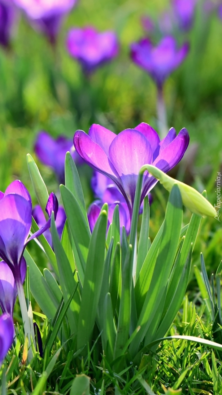 Edytor tapety: Fioletowe krokusy na łące