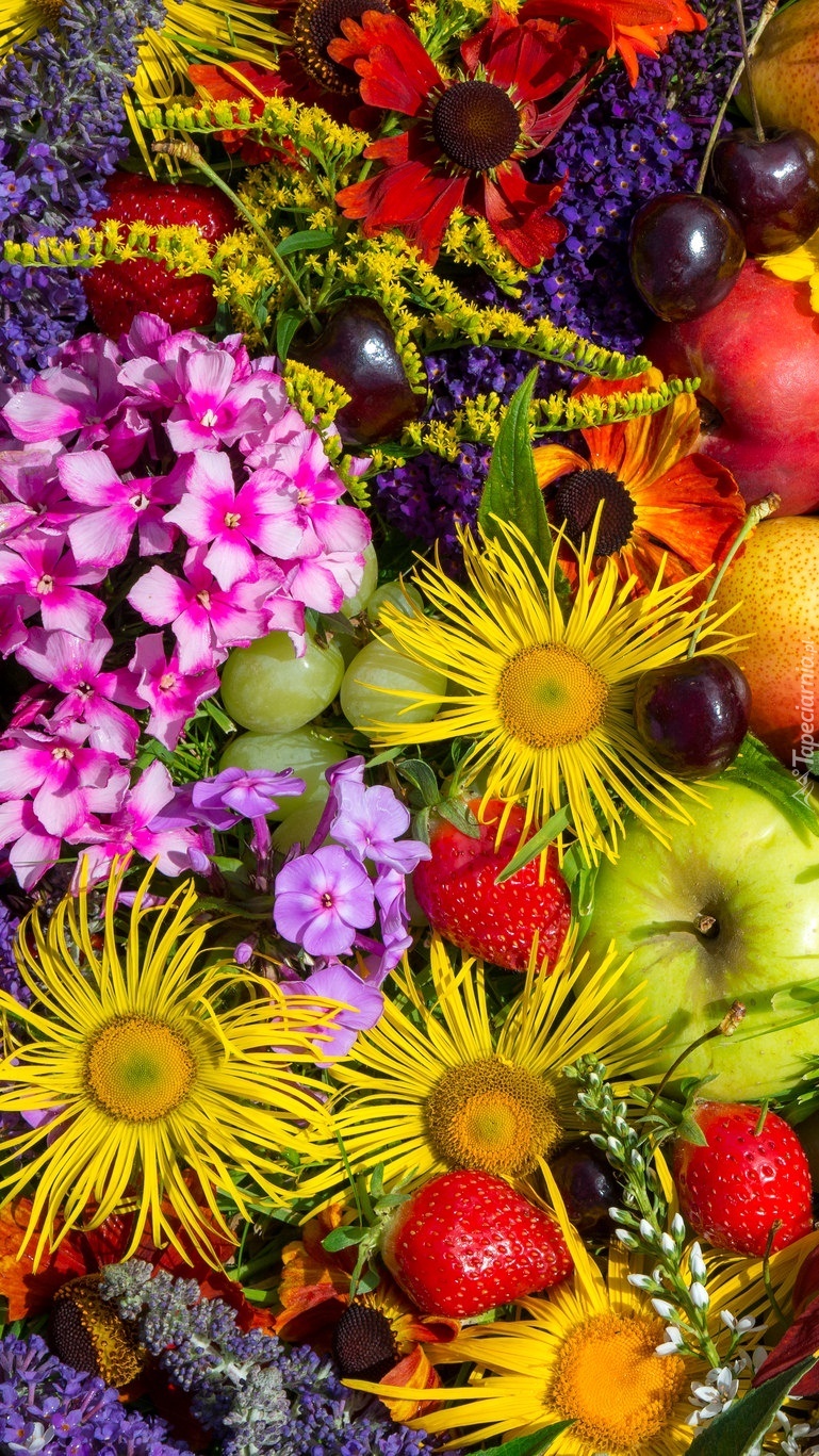 Edytor tapety: Kolorowe kwiaty i owoce