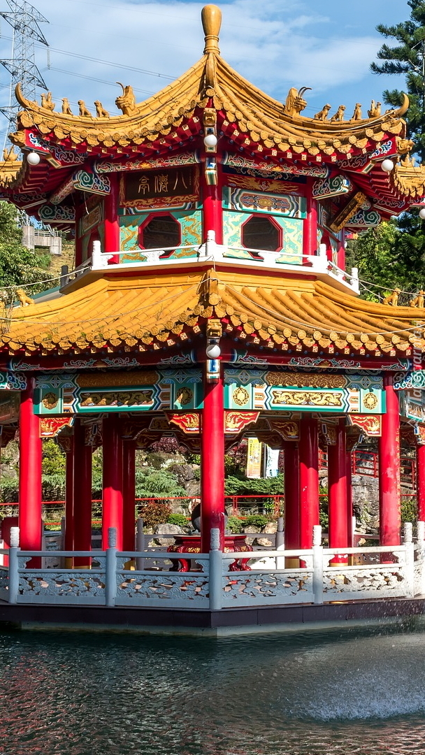 Edytor tapety: Altana w ogrodzie nad stawem