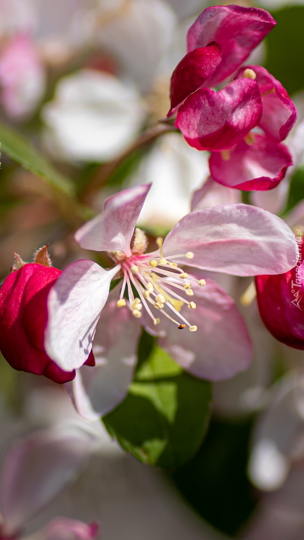 Edytor tapety: Kwitnąca gałązka jabłoni