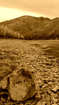 Edytor tapety: Kamienisty brzeg górskiej rzeki