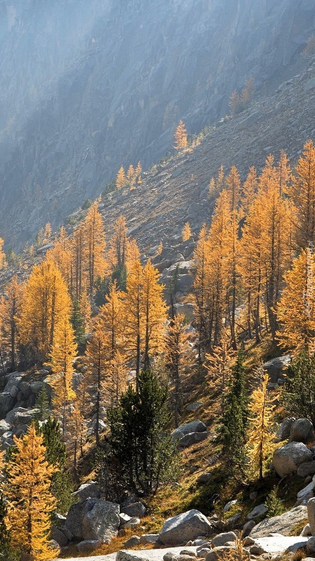 Edytor tapety: Pożółkłe drzewa na zboczu góry