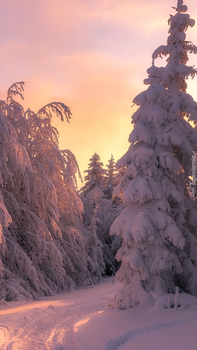Edytor tapety: Ośnieżone drzewa w słonecznym blasku