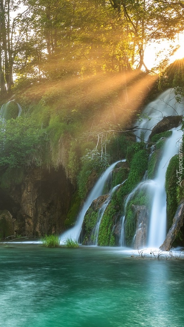 Edytor tapety: Wodospad wpadający do jeziora