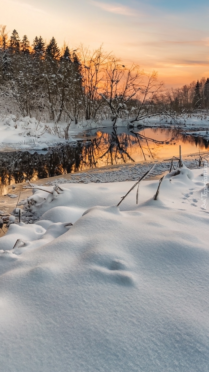 Edytor tapety: Śnieg na brzegach rzeki
