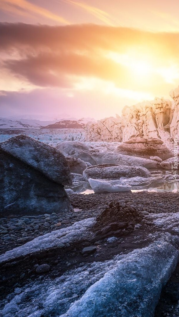 Edytor tapety: Oblodzone skały nad jeziorem Jokulsarlon