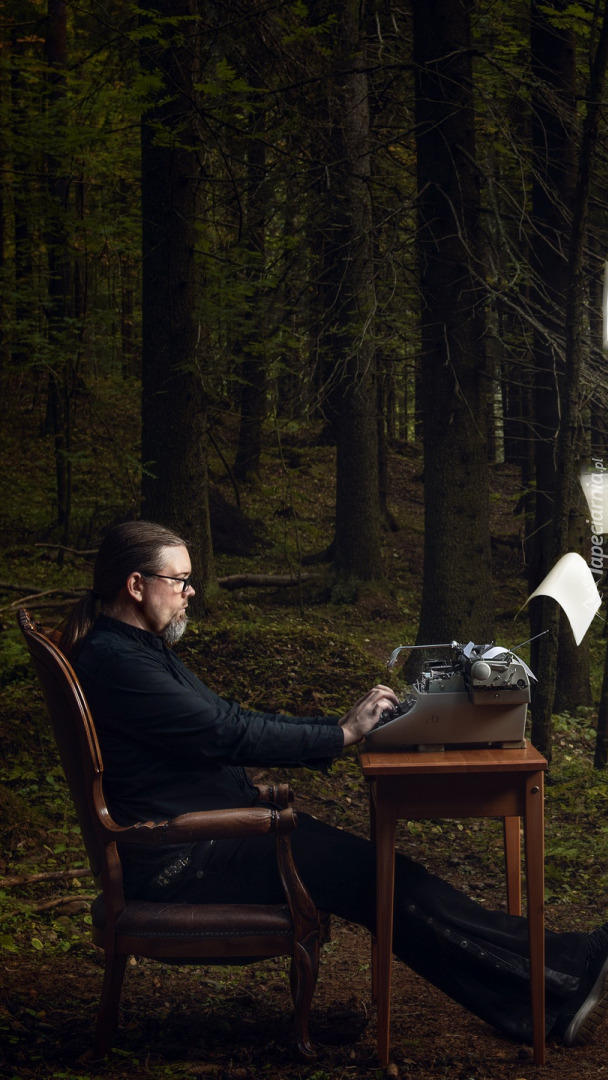 Edytor tapety: Mężczyzna przy maszynie do pisania