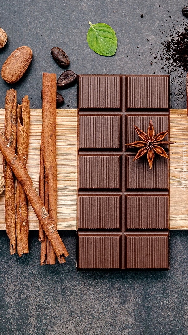 Edytor tapety: Tabliczka czekolady obok cynamonu