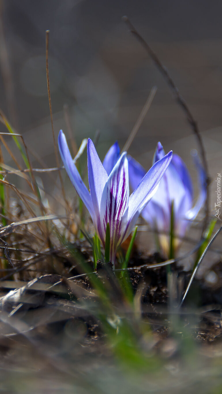 Edytor tapety: Niebieskie krokusy w trawie