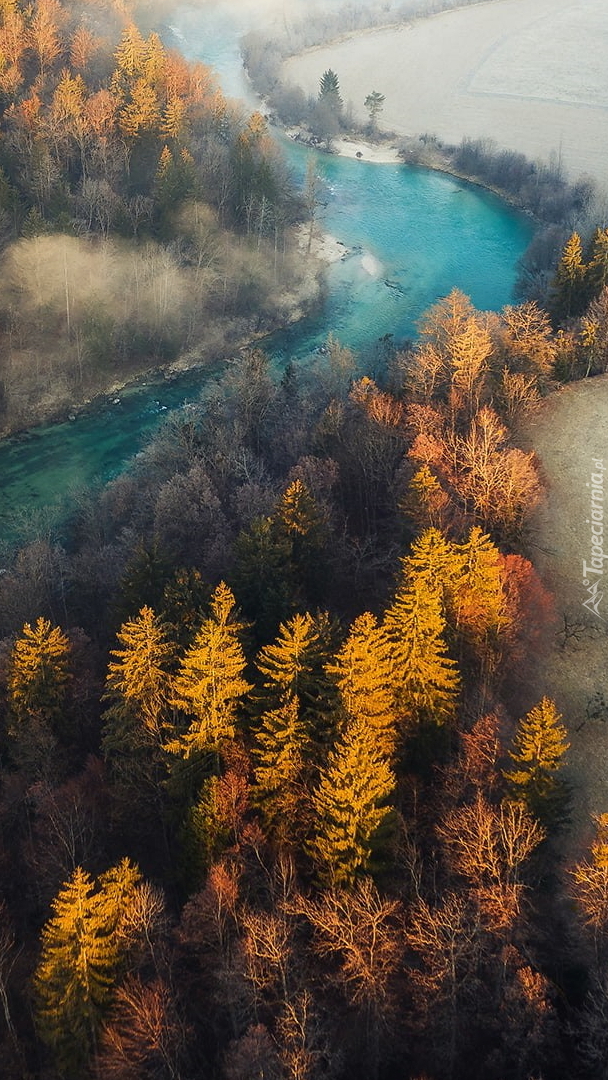Edytor tapety: Pożółkłe drzewa wzdłuż rzeki Sava