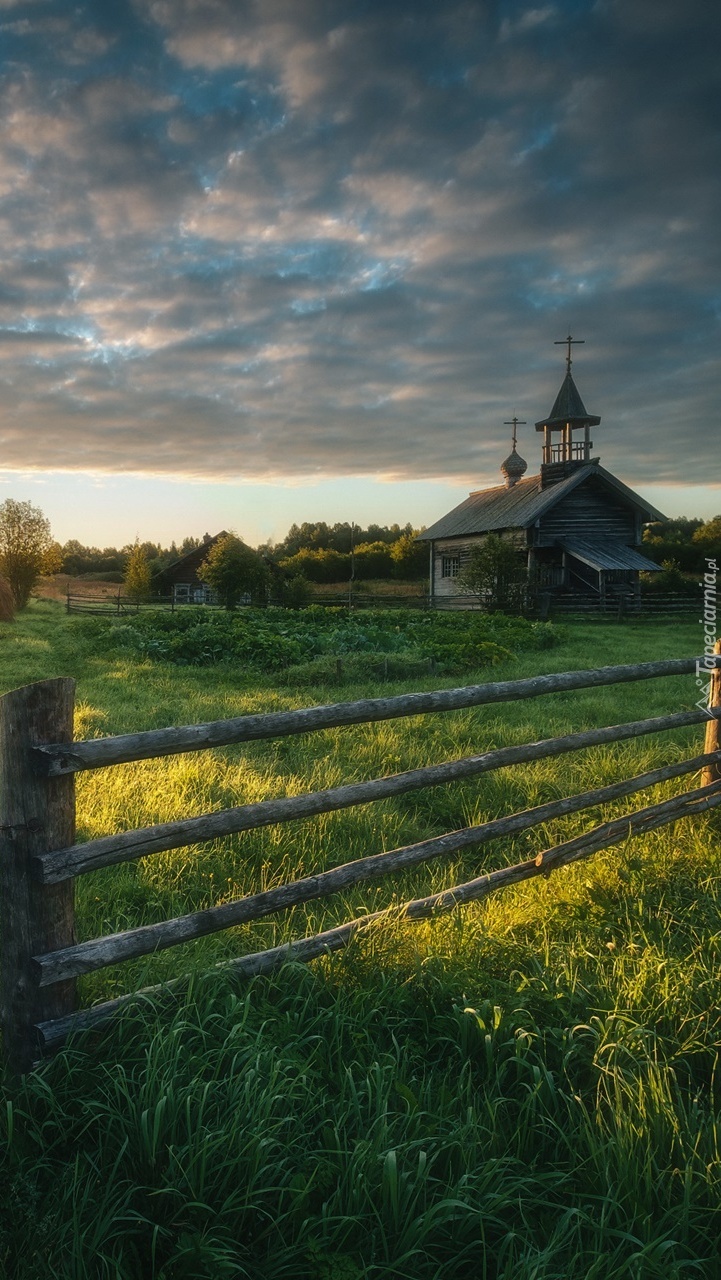 Edytor tapety: Cerkiew przy ogrodzeniu na łące