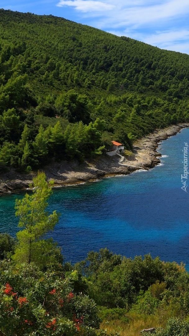 Edytor tapety: Zalesione góry nad jeziorem