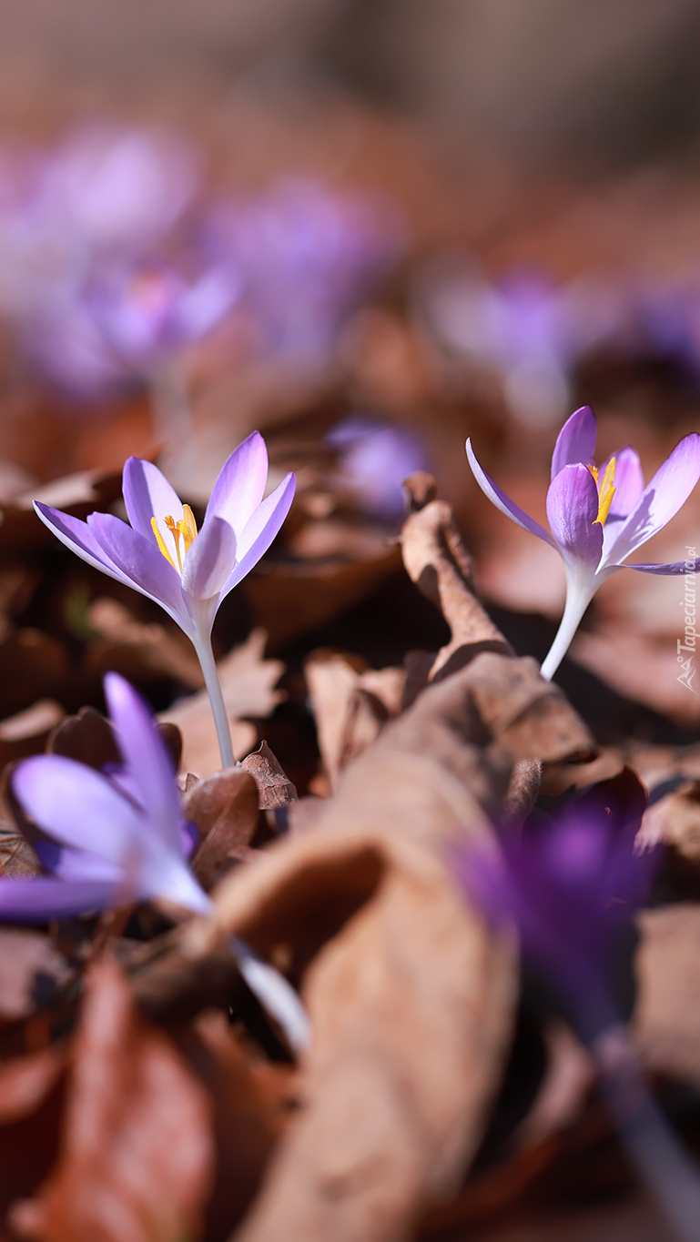 Edytor tapety: Liliowe krokusy w suchych liściach
