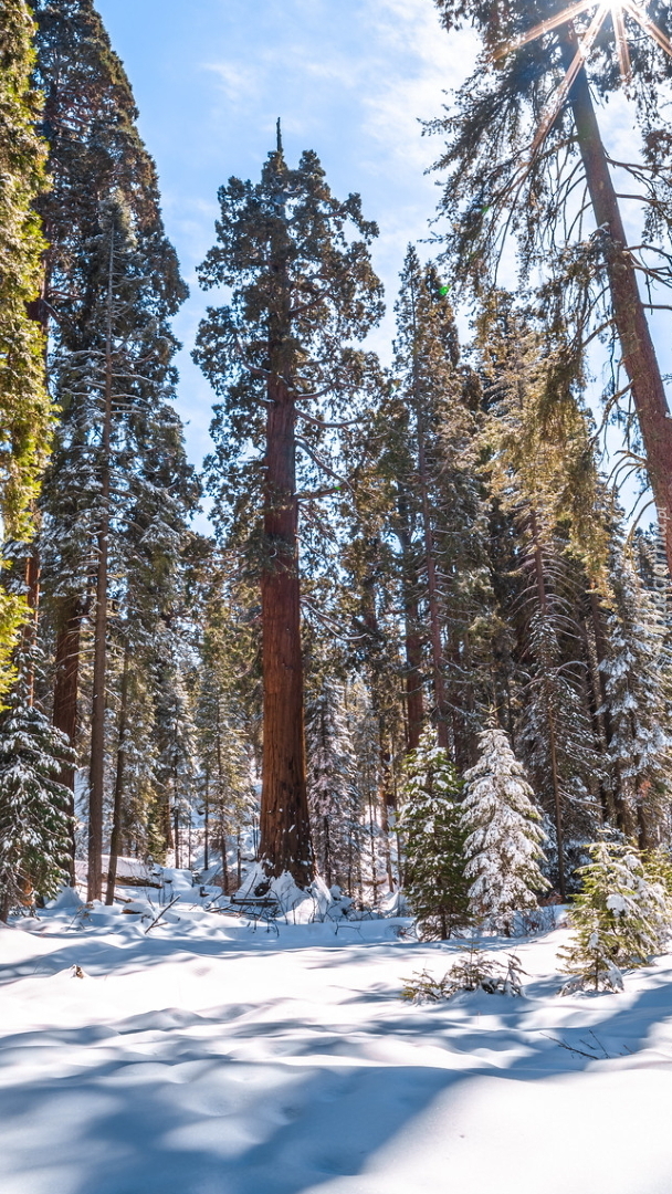 Edytor tapety: Ośnieżone sekwoje w lesie