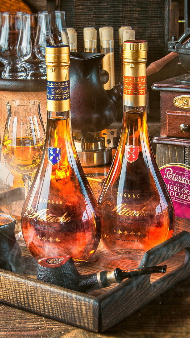 Edytor tapety: Dwie butelki koniaku na tacy