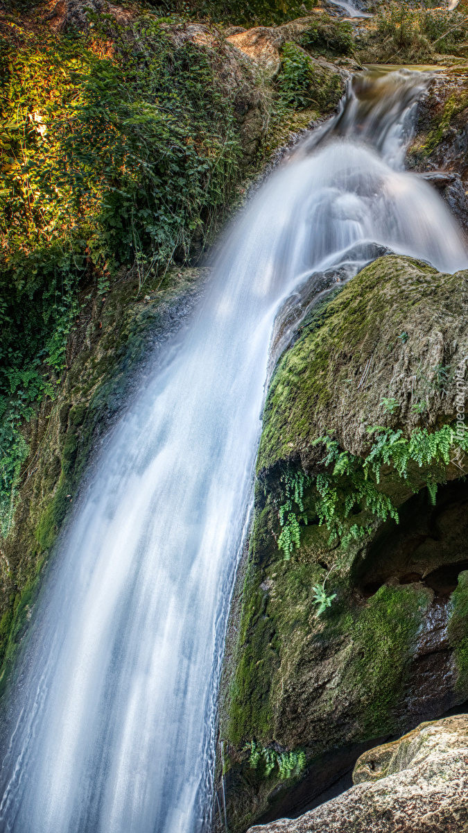 Edytor tapety: Omszała skała pod wodospadem
