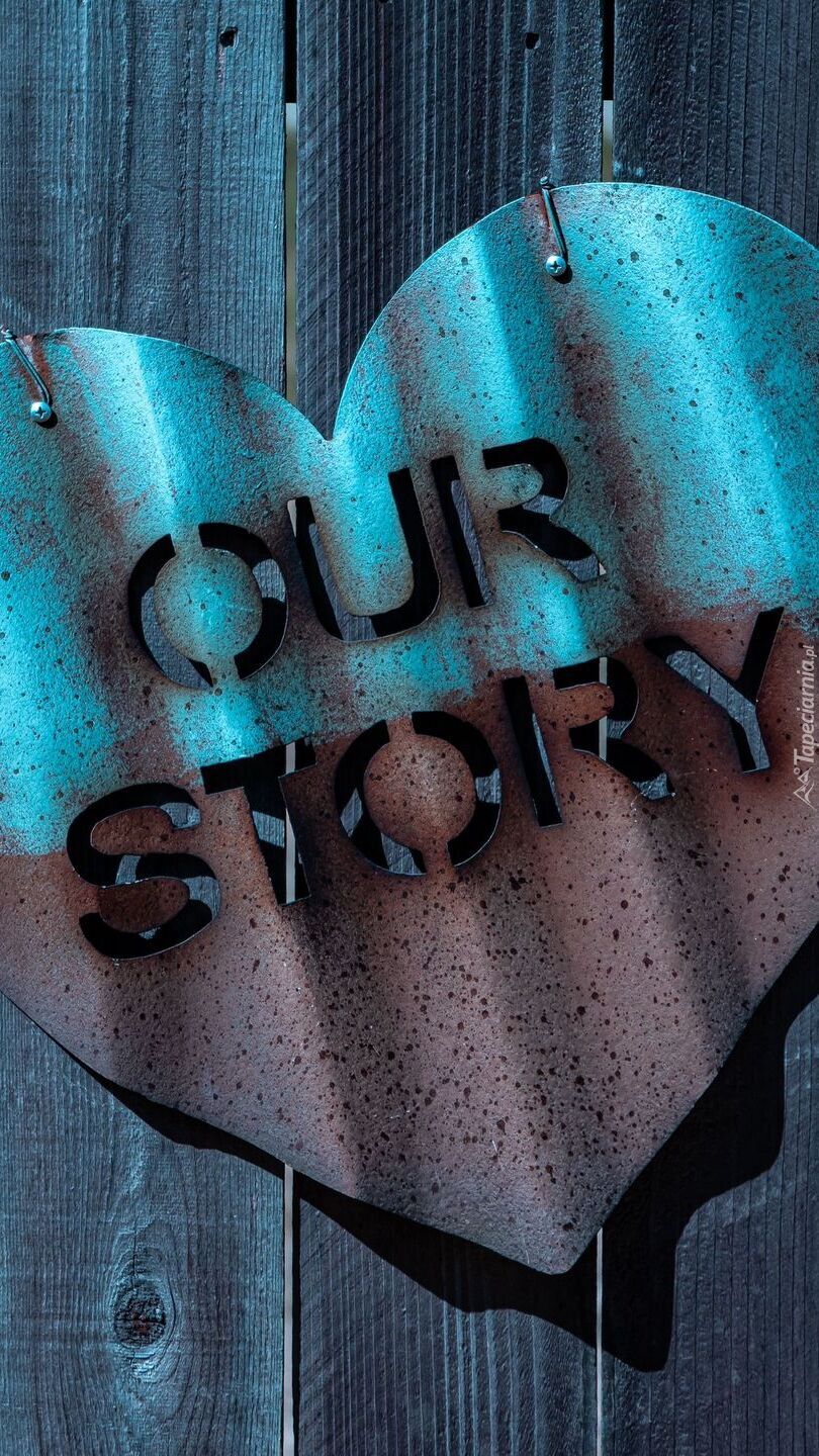 Edytor tapety: Napis Our Story na metalowym sercu