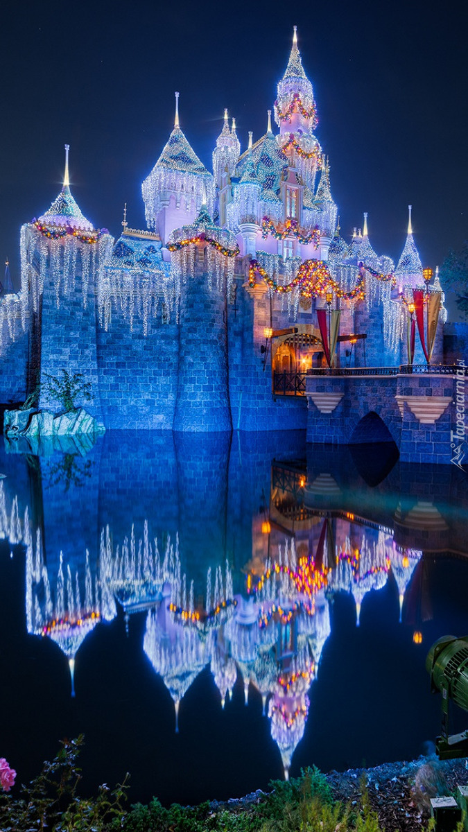 Edytor tapety: Oświetlony Zamek Śpiącej Królewny w Disneylandzie