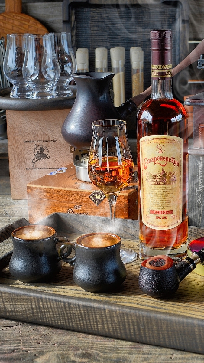 Edytor tapety: Koniak i kawa na tacy