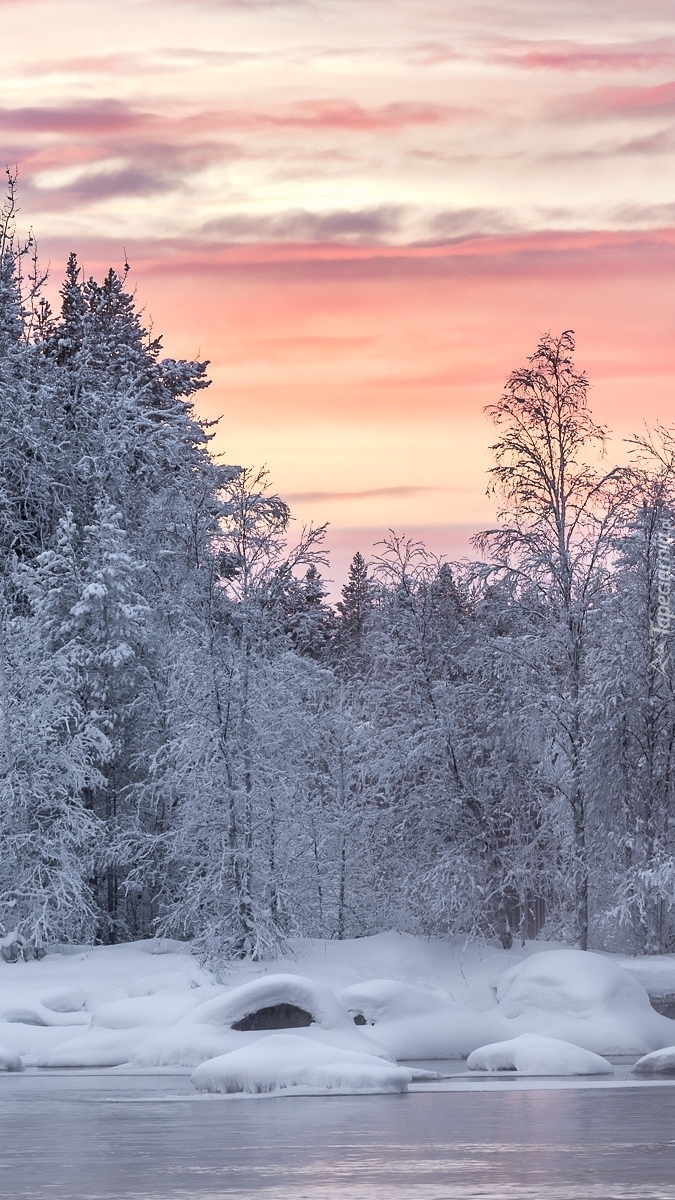 Edytor tapety: Ośnieżony las i rzeka
