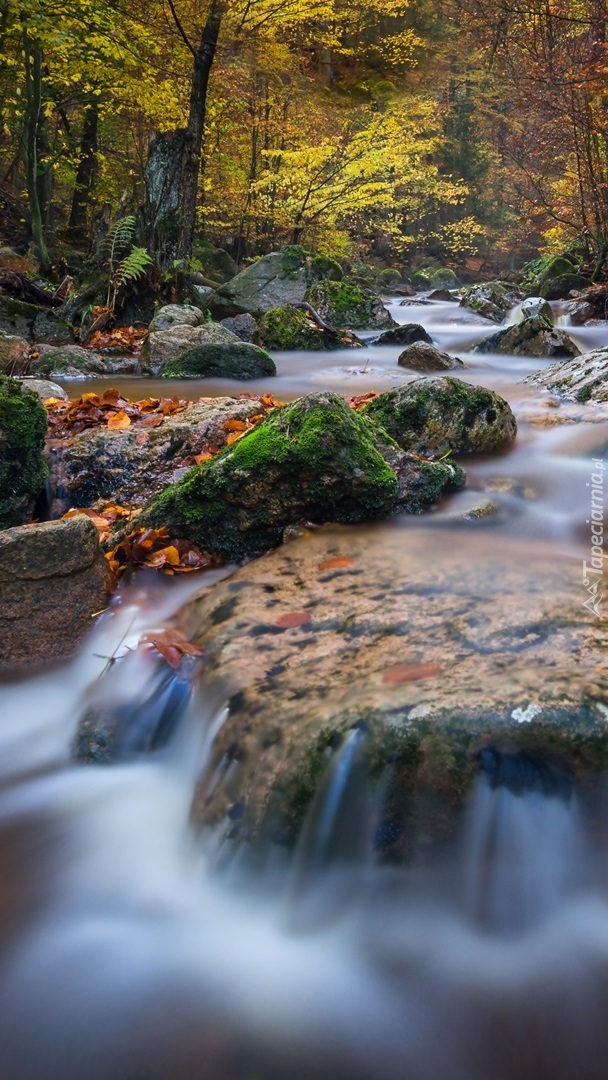 Edytor tapety: Omszałe głazy na leśnej rzece