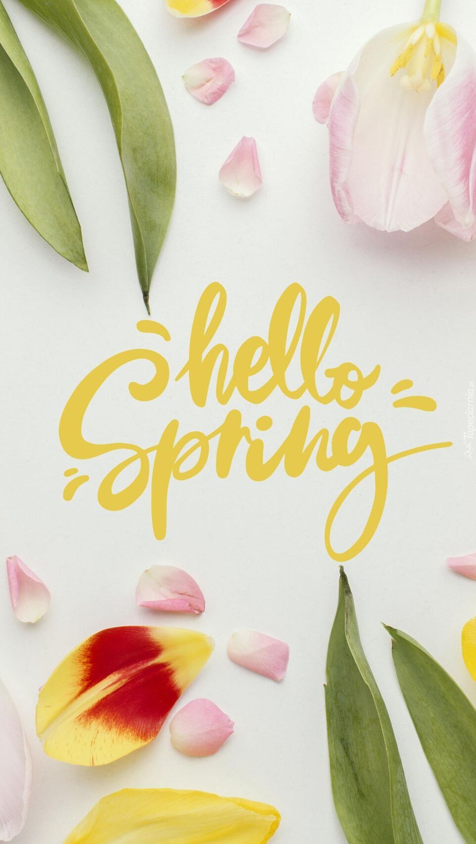 Edytor tapety: Tulipany przy napisie hello spring